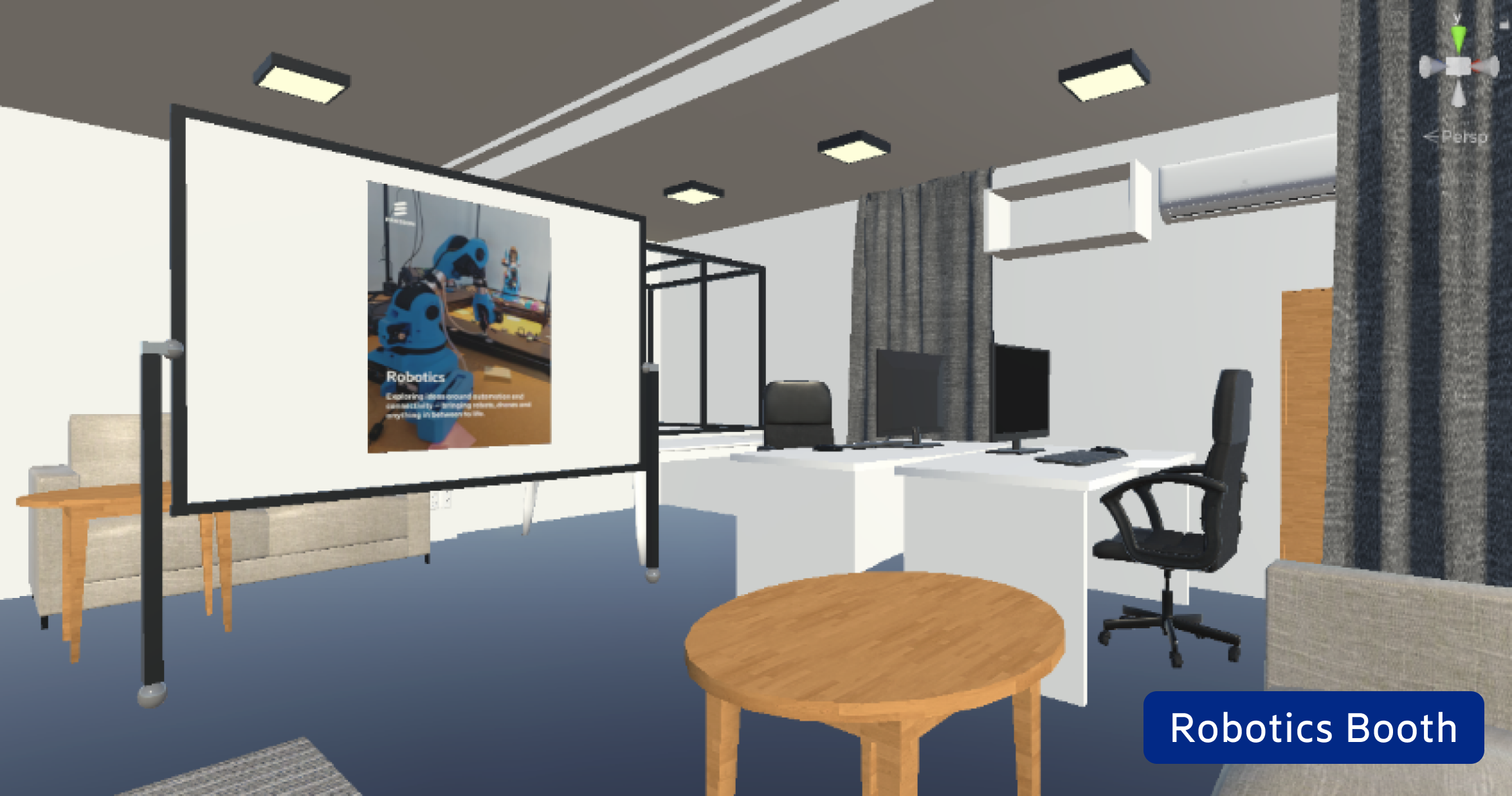 I built a 3D digital twin of our innovation lab in Sweden using Unity, mixing free assets and my own creations. One prominent feature is being able to teleport from one lab location to the other and interact with their respective smart sensors. So the main goal was to offer people an immersive experience, making them feel like they're actually in our workspace.