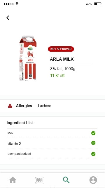 Food allergies and preferences can make it difficult for users to check if a product is suitable for them. Reading every ingredient on a label is inefficient, frustrating, and can be dangerous due to complicated and unknown ingredients.