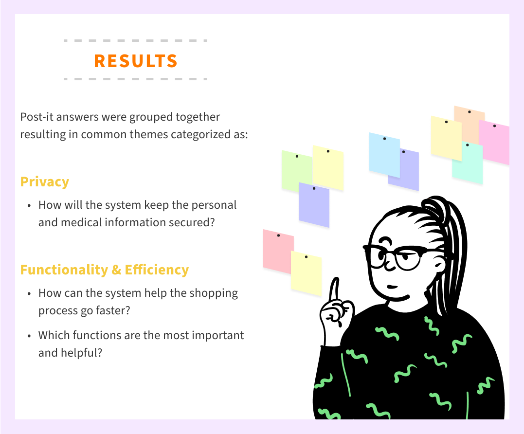 These post-its were then grouped together to create common themes of concern, questions, potential issues, and so on. An example is seen on the image above.
