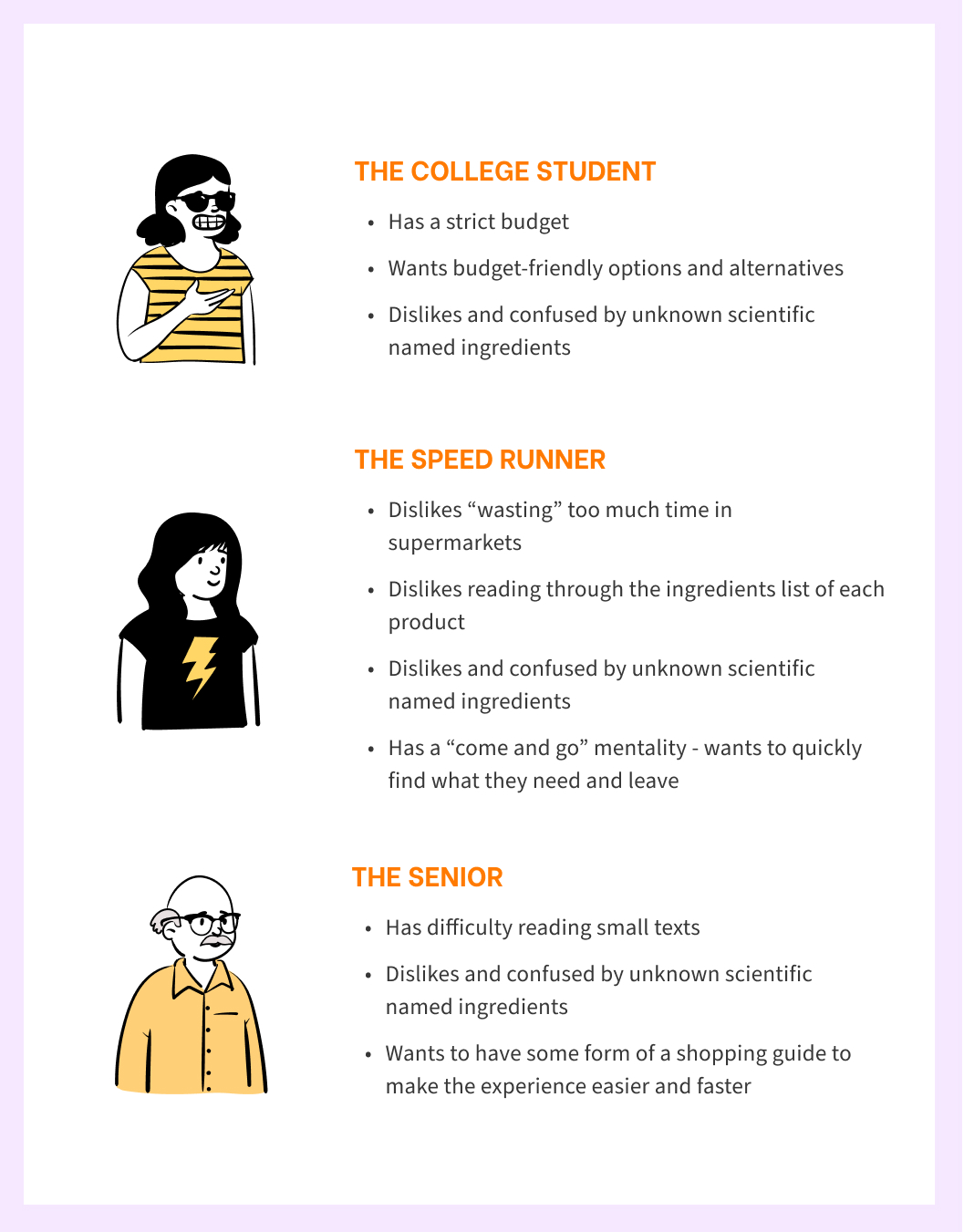 A major pain point that emerged from the interviews was the time-consuming process of reading ingredient lists and all personas expressed their concern and confusion over the various scientific names used in ingredient lists.