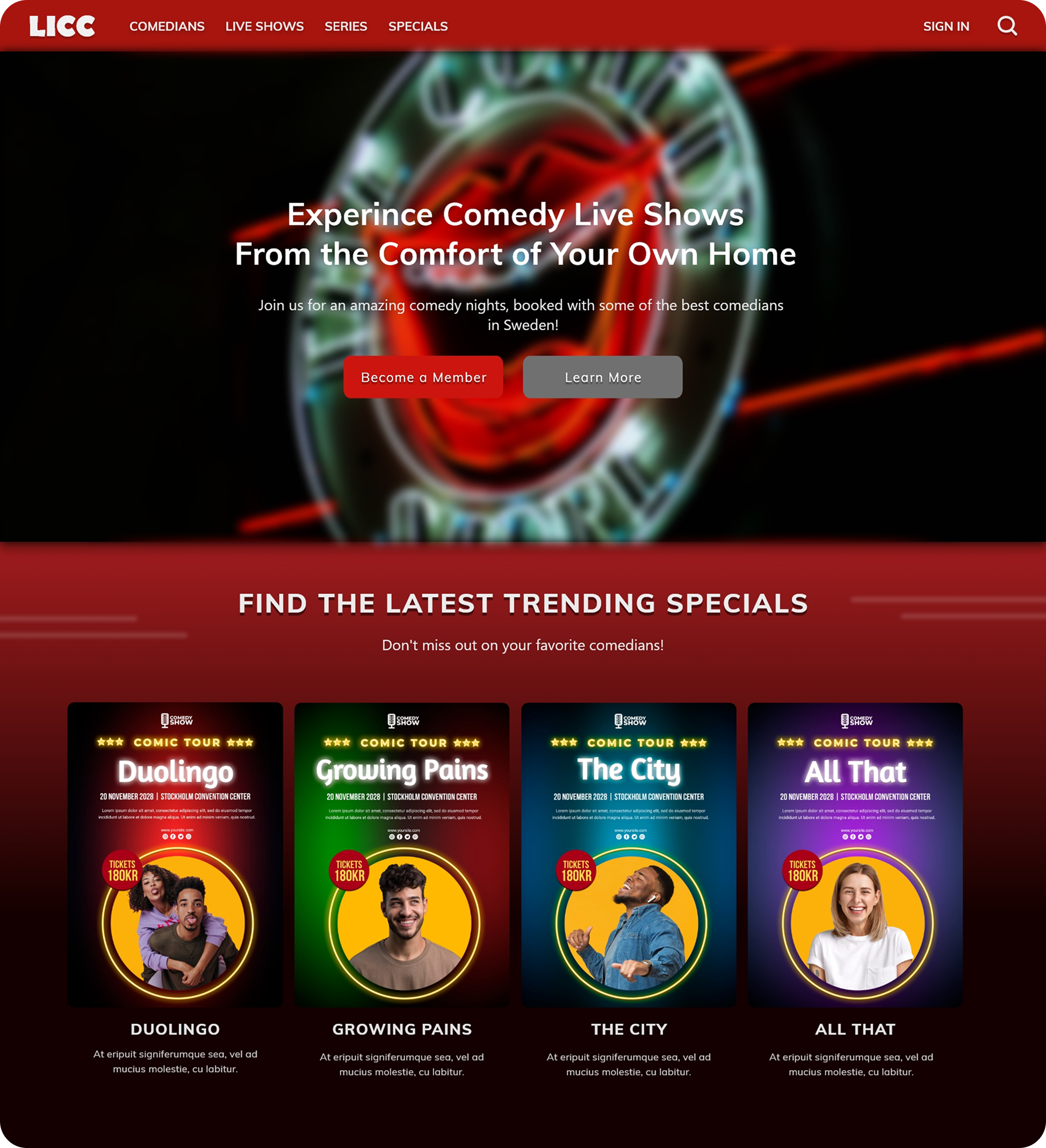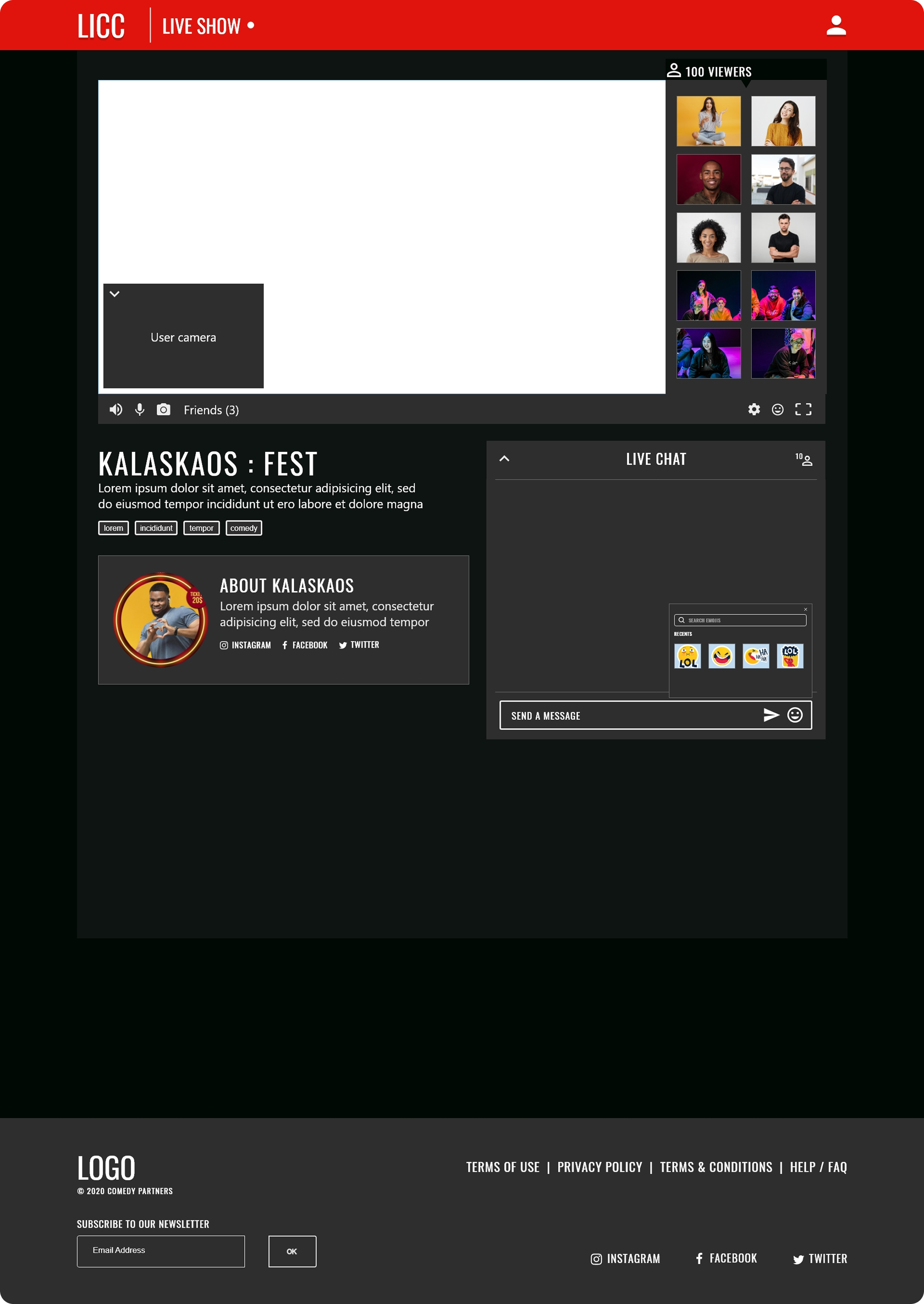 Live Interactive Comedy Club (LICC) is a live-streaming prototype designed to recreate the atmosphere of a comedy club through real-time audience interaction, allowing people to perform, watch, and react together from anywhere.